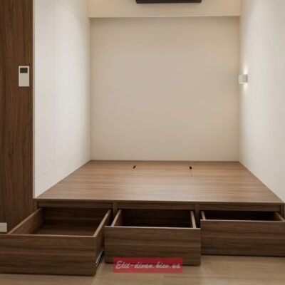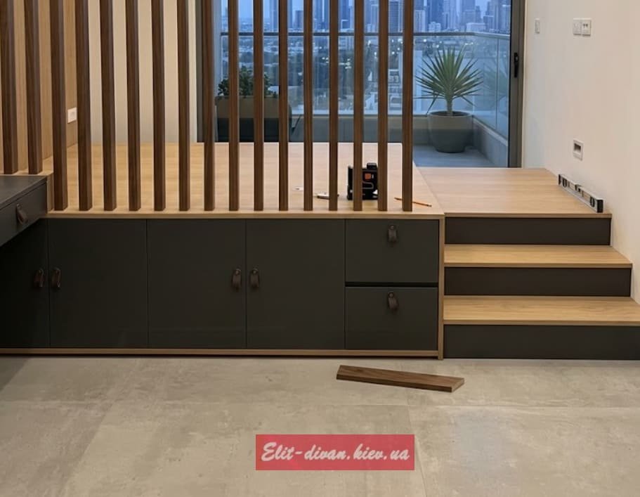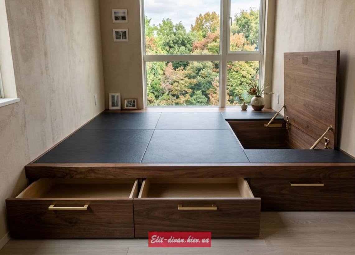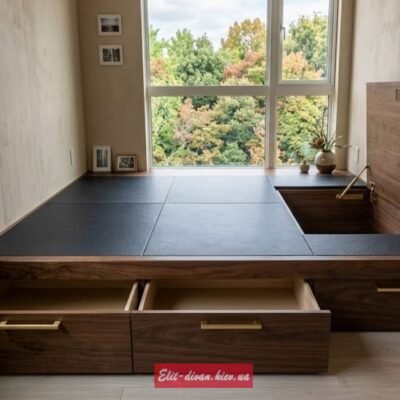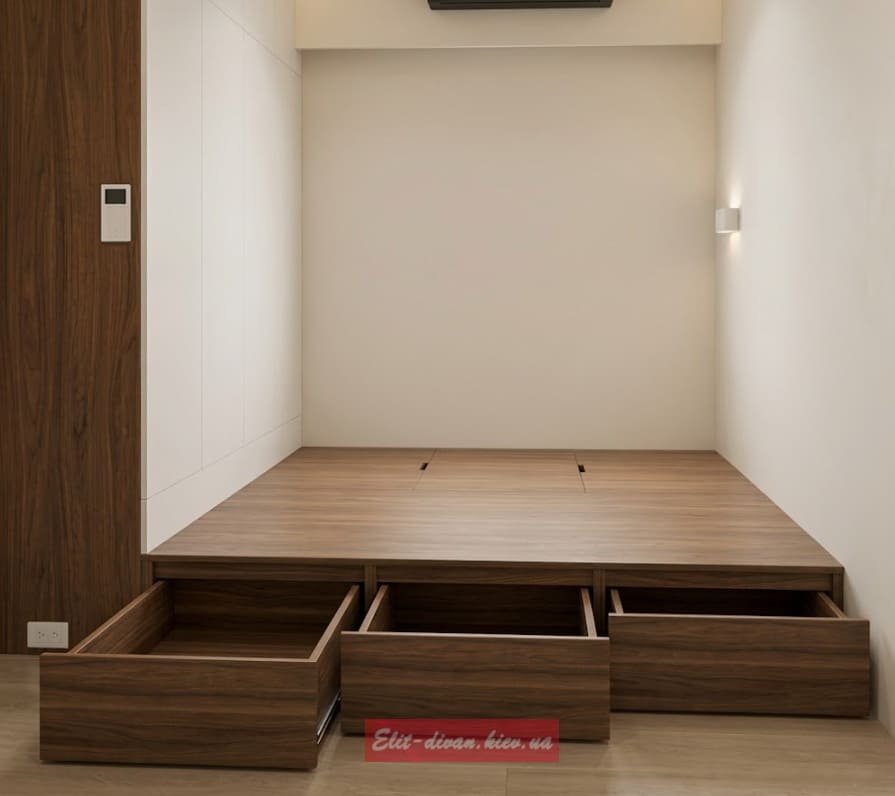 Подиум служит не только декоративным элементом, но и практичным местом для хранения вещей. В его конструкции могут быть предусмотрены ящики, ниши или выдвижные секции.