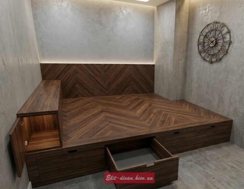 Особливо актуальна для невеликих кімнат, де кожен метр має значення. Подіум допомагає приховати постільну білизну, одяг та інші предмети.